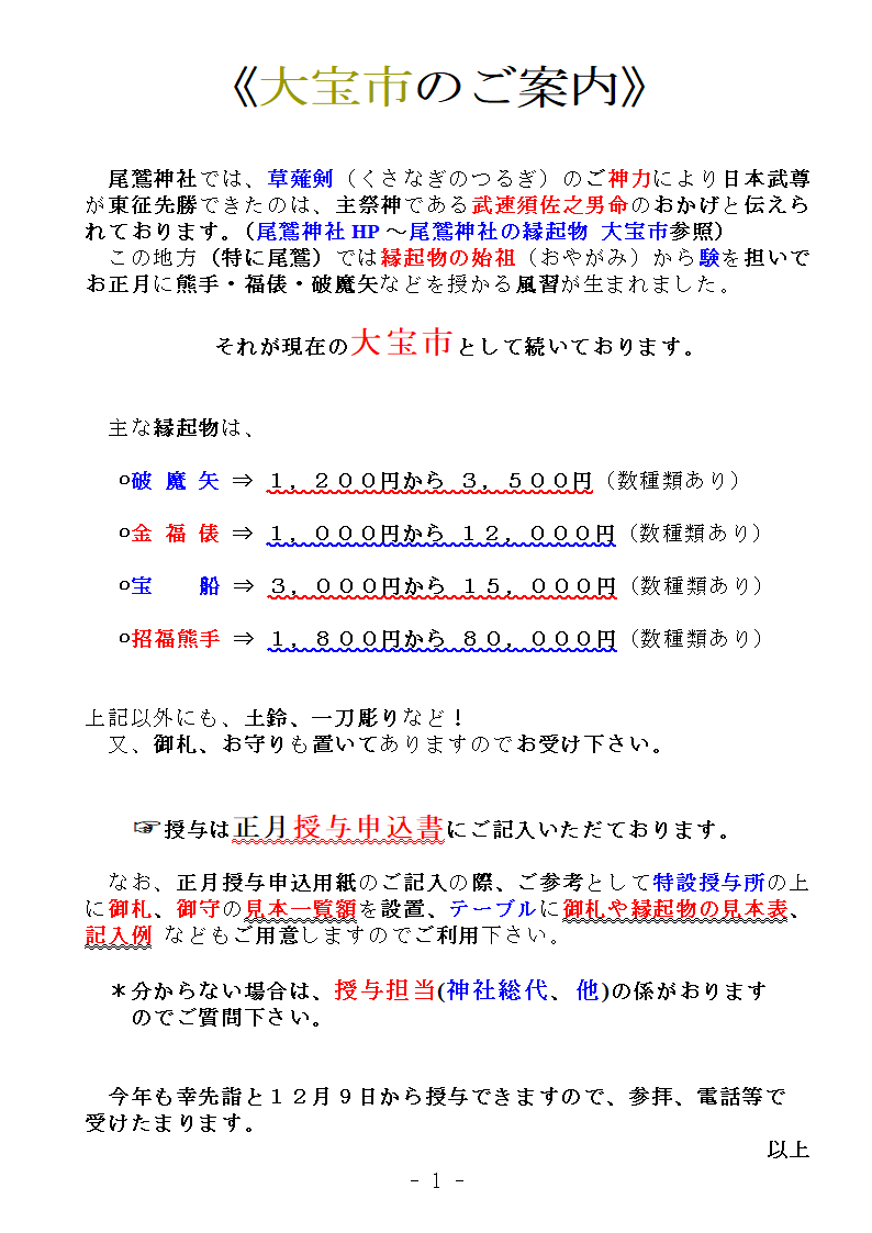 尾鷲神社は、古事伝承や御神徳に満ち、神事や祭典、文化財の宝庫でもあります。ぜひいちどお越しください。